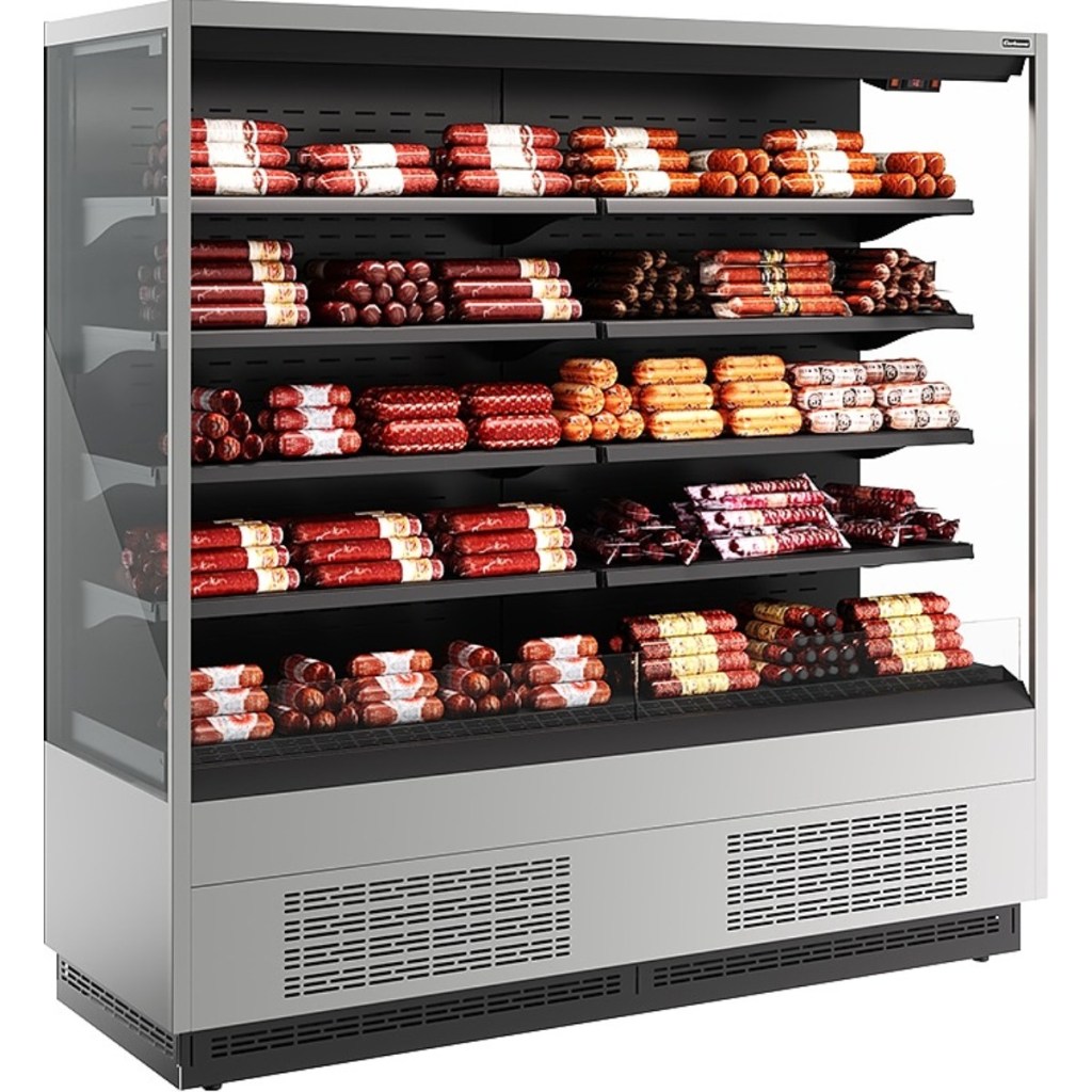 Горка холодильная Carboma FC20-07 VM 1,9-2 (версия 2.0) (ночная шторка) (9006-9005) применяется на предприятиях общественного питания и торговли для охлаждения, кратковременного хранения и предпродажной демонстрации напитков, мяса, птицы, полуфабрикатов, молочных и гастрономических изделий.