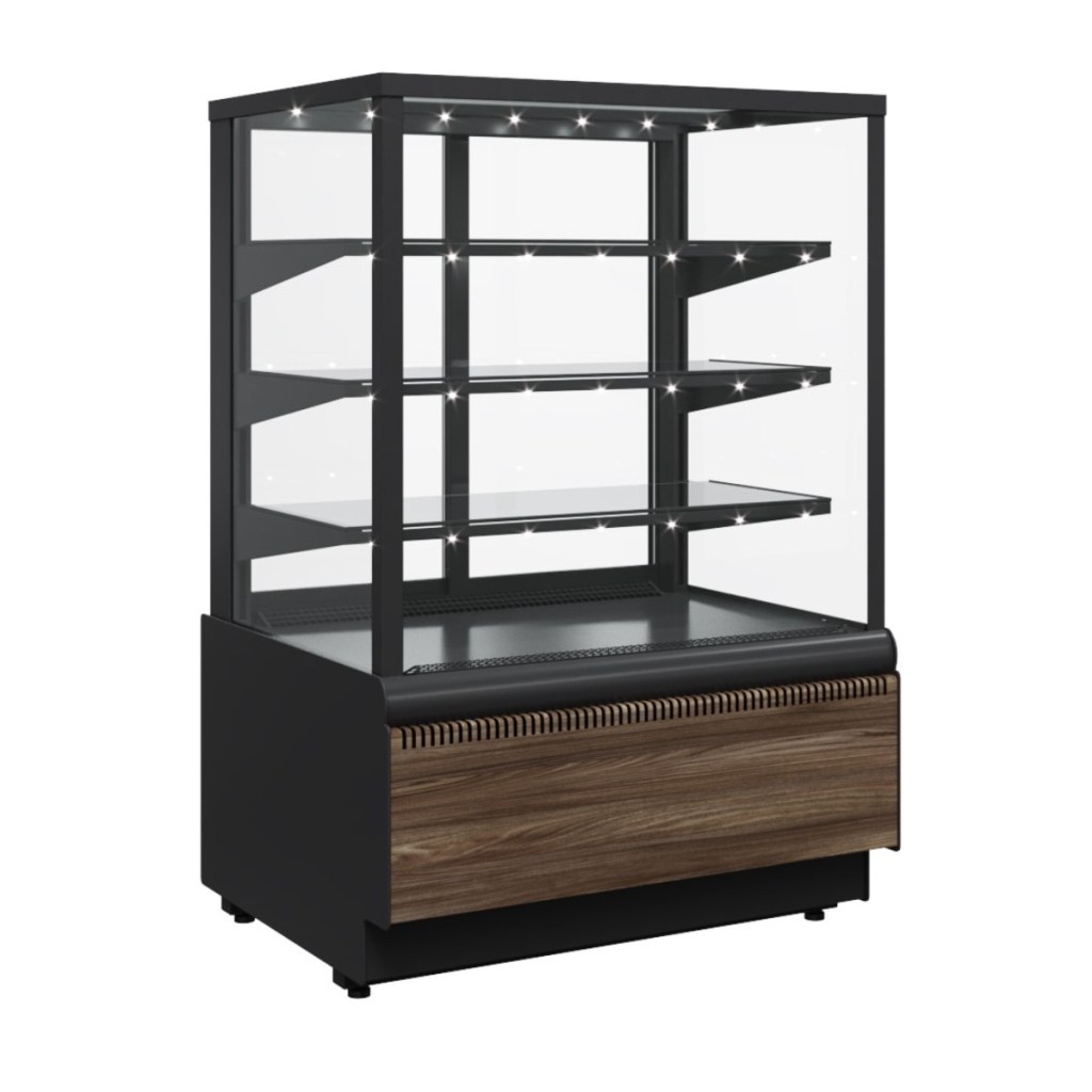 Витрина кондитерская Carboma KC70 VV 1,3-1 Standard Паттерн (0108 Темный дуб) — это современная витрина с холодильной системой, разработанная для хранения и эффектной презентации тортов, пирожных, муссов и других десертов. Она сочетает в себе высокую функциональность, продуманный дизайн и надёжные комплектующие, что делает её отличным решением для кафе, кондитерских, ресторанов и магазинов.
