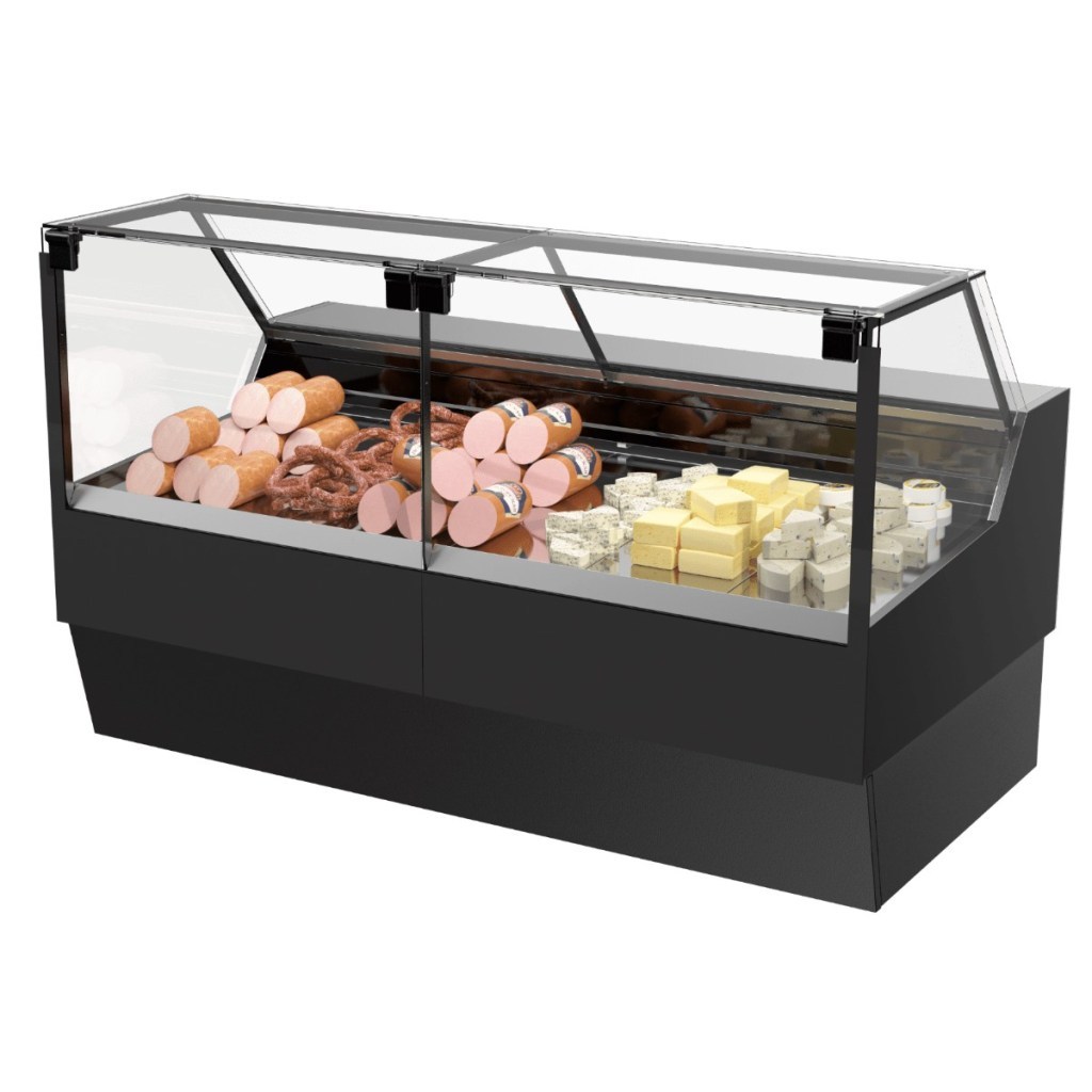 Модель оснащена прочным корпусом с ударопрочным бампером из ABS-пластика, фронтальными и боковыми стеклами, задними шторками из оргстекла, регулируемыми ножками и светодиодной подсветкой для удобной выкладки продукции.