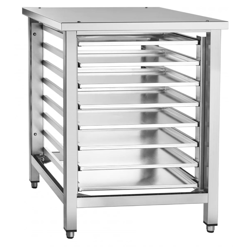 Под рабочей поверхностью подставки предусмотрены направляющие, позволяющие разместить до 6 гастроемкостей формата GN 1/1, GN 1/2 или GN 1/3. Это упрощает организацию кухонного пространства и обеспечивает удобный доступ к необходимым ёмкостям во время приготовления блюд.