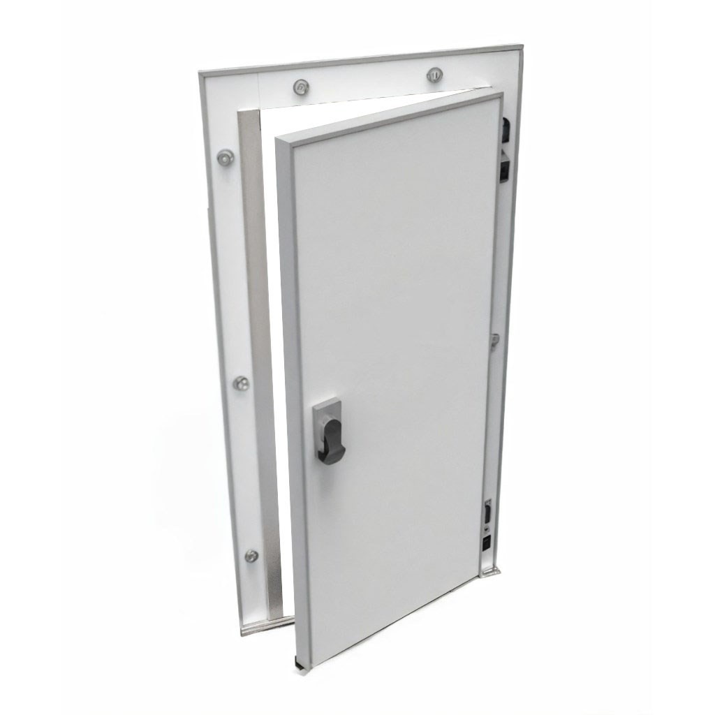 Каталог оборудования Холодильное оборудованиеДвери для холодильных камерРаспашные одностворчатые холодильные двериДверь холодильная распашная одностворчатая СТ-РДО-1000*2100/80 (с металлической рамой) Дверь холодильная распашная одностворчатая СТ-РДО-1000*2100/80 (с металлической рамой) Код товара: 065-860 Поделиться: WhatsAppTelegram СравнитьДобавить в КПВ избранное 0 38 627 ₽ В корзину 0 шт Под заказСамовывоз сегодня бесплатно Взять в кредит Купить в лизинг Получить консультацию в WhatsApp Описание Характеристики Отзывы 0 Инструкции 1 Дверь холодильная распашная одностворчатая СТ-РДО-1000*2100/80 (с металлической рамой) – это надежное и энергоэффективное решение для установки на предприятиях пищевой промышленности, в логистических центрах, на складах и терминалах. Дверь спроектирована для стабильной работы в условиях пониженных температур, что делает её оптимальным выбором для объектов с повышенными требованиями к сохранности продукции. В среднетемпературном исполнении СТ-80 дверь предназначена для эксплуатации при температурах до –5°. Особенности: Теплоизоляция: плита из пенополиуретана Dow Izolan высокой плотности (40–45 кг/м³) обеспечивает минимальные теплопотери, не содержит вредных хлорфторуглеродов и безопасна для пищевых производств. Пожаробезопасность: предел огнестойкости EI 15 позволяет использовать дверь в зонах с повышенными требованиями к безопасности. Конструкция: прочная рама из анодированного алюминия устойчива к коррозии, дверное полотно покрыто оцинкованной сталью толщиной 0,45–0,65 мм с полиэфирным слоем (RAL 9003), что обеспечивает долговечность и гигиеничность. Герметичность: двухконтурное резиновое уплотнение сотовой структуры на ПВХ-основе исключает мосты холода и обеспечивает надежное удержание температуры. Фурнитура: комплектуется надежной европейской фурнитурой. Замок оснащён системой аварийного открывания с флуоресцентной маркировкой, что исключает риск блокировки персонала внутри камеры. Холодильная дверь СТ-РДО-1000*2100/80 сочетает в себе прочность, долговечность и высокую энергоэффективность. Она гарантирует надежное сохранение температурного режима и безопасность эксплуатации, полностью соответствуя требованиям предприятий пищевой отрасли и объектов хранения.Изображение товара, представленного на фото, может отличаться от его фактического вида. Показать все Ширина светового проема1000 ммВысота светового проема2100 ммТемпературный режимСреднетемпературный (от -5 до +5) Толщина двери80 ммОткрываниеЛевое/Правое Замок с аварийным открываниемДа БрендСевер Оставить отзыв Еще никто не оставил отзыв на этот товар Буклет двери изотермические и технологические ТМ Север.pdf Ранее просмотрено Под заказ 32 861 ₽ Дверь холодильная распашная одностворчатая СТ-РДО-800*1800/80 (с металлической рамой) Под заказ 39 976 ₽ Дверь холодильная распашная одностворчатая СТ-РДО-1000*2200/80 (с металлической рамой)