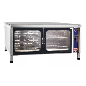 Вмещает 4 уровня, равномерно распределяет тепло, а стеклянные дверцы позволяют наблюдать за процессом.