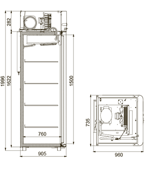 Каталог оборудования Холодильное оборудованиеШкафы холодильныеШкафы морозильные низкотемпературные до -18 °СШкаф морозильный Polair CB107-Sm Alu Шкаф морозильный Polair CB107-Sm Alu Код товара: 062-592 Поделиться: WhatsAppTelegram СравнитьДобавить в КПВ избранное 0 149 175 ₽ В корзину 0 шт Под заказСамовывоз сегодня бесплатно Взять в кредит Купить в лизинг Получить консультацию в WhatsApp Описание Характеристики Отзывы 0 Инструкции 4 Шкаф морозильный Polair CB107-Sm Alu предназначен для демонстрации и надежного хранения продуктов на предприятиях общественного питания и торговли. Цельнозаливной корпус выполнен из стали с полимерным покрытием и дополнен алюминиевыми профилями, что обеспечивает высокую механическую прочность и долговечность конструкции. Алюминиевые элементы дверей и верхней панели подчеркивают современный и премиальный дизайн. Шкаф стабильно работает при температуре окружающей среды до +40 °С и относительной влажности воздуха до 80%, сохраняя продукты в оптимальных условиях. Основные особенности: Электронный блок управления с жидкокристаллическим дисплеем Верхнее расположение агрегата, обеспечивающее удобный доступ к внутреннему объему Клапан Шредера для обслуживания системы охлаждения Компенсационный клапан с ПЭНом обогрева для предотвращения перепадов давления ПЭН обогрева трубки слива конденсата и ПЭН обогрева дверного проема для защиты от наледи Распашной тип дверей с возможностью изменения стороны открывания Интегрированные ручки, встроенные в алюминиевые профили дверей Эластичные уплотнители с магнитными вставками, обеспечивающие максимальную герметизацию Встроенная внутренняя подсветка для удобного обзора содержимого Микропереключатель, отключающий вентилятор и включающий подсветку при открытии двери Регулируемые по высоте ножки и педаль для открывания двери, повышающие эргономику использования Замок для безопасного хранения продукции 4 полки формата GN 2/1 (530×650 мм) с допустимой нагрузкой до 40 кг Толщина теплоизоляции корпуса — 61 мм Изображение товара, представленного на фото, может отличаться от его фактического вида. Показать все Габаритные размеры735×945×1996 ммДиапазон рабочей температурыдо -18 °CДлина735 ммГлубина450 ммВысота1996 ммОбъём700 лМатериал корпусаНержавеющая сталь Тип управленияМеханическое Расход электроэнергии в сутки12 кВтКоличество полок2 штКоличество дверей1 штЗамокЕсть Тип двериМеталлическая Способ открыванияРаздвижные (купе) Напряжение220 ВХладагентR290 Расположение агрегатаНижнее Габариты в упаковке850×988×2160 ммВес нетто128 кгВес брутто152 кгБрендPolair Оставить отзыв Еще никто не оставил отзыв на этот товар Схема POLAIR CB107-Sm.jpgИнструкция на POLAIR CB107-Sm.pdfСертификат соответствия.pdfДекларация о соответствии.pdf Похожие товары Перейти в каталог В наличии 186 007 ₽ Шкаф морозильный со стеклом TEFCOLD UFSC370G В наличии 497 576 ₽ Шкаф морозильный со стеклом TEFCOLD UFSC1600GCP трехдверный В наличии 262 627 ₽ Шкаф морозильный с глухой дверью TEFCOLD GUF140 В наличии 208 283 ₽ Шкаф морозильный с глухой дверью TEFCOLD BF850 нержавеющий под противни 600Х400/800ММ Под заказ 149 670 ₽ Шкаф морозильный Abat ШХн-0,7-01 нерж. Под заказ 129 640 ₽ Шкаф морозильный с глухой дверью TEFCOLD UF600S нержавеющий Под заказ 89 817 ₽ Шкаф морозильный со стеклом TEFCOLD UF100G В наличии 254 424 ₽ Шкаф морозильный с глухой дверью TEFCOLD RF710 нержавеющий С этим товаром покупают Под заказ 87 278 ₽ Витрина холодильная 