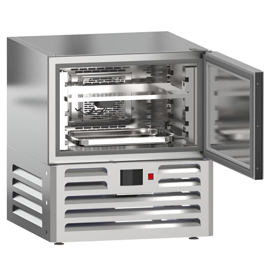 Каталог оборудования Холодильное оборудованиеШкафы шоковой заморозкиШкаф шоковой заморозки Kayman Shockwind ШШЗ-5 Шкаф шоковой заморозки Kayman Shockwind ШШЗ-5 Код товара: 061-551 Поделиться: WhatsAppTelegram СравнитьДобавить в КПВ избранное 0 157 212 ₽ В корзину 0 шт В наличии на 1 складеДоступно для заказа 1 шт.Наличие на складахМоскваМО, Бритово, Раменский гор. округ, Складской комплекс ССТ, корп. 2, секция 2В наличии 1 шт.Самовывоз сегодня бесплатно Расчет стоимости доставкиОткудаМоскваКудаМоскваСанкт-ПетербургАстраханьБарнаулБелгородБрянскВладивостокВолгоградВоронежЕкатеринбургИвановоИжевскИркутскКазаньКалининградКемеровоКировКраснодарКрасноярскКурскЛипецкМагнитогорскМахачкалаНабережные ЧелныНижний НовгородНижний ТагилНовокузнецкНовосибирскОмскОренбургПензаПермьПятигорскРостов-на-ДонуРязаньСамараСаратовСимферопольСтавропольТверьТольяттиТомскТулаТюменьУлан-УдэУльяновскУфаХабаровскЧебоксарыЧелябинскЯрославльРассчитатьРасчет стоимости доставки указан приблизительный, более точный расчет Вам может осуществить сотрудник транспортной компании. Взять в кредит Купить в лизинг Получить консультацию в WhatsApp Описание Характеристики Отзывы 0 Инструкции 1 Шкаф шоковой заморозки Kayman Shockwind ШШЗ-5 предназначен для быстрого замораживания продуктов и готовых блюд, что позволяет сохранить их вкус, структуру и питательные свойства. Идеален для использования в ресторанах, кафе, пищевых производствах и торговых предприятиях, где важно оперативно достичь низких температур. Особенности конструкции и функционала: Динамическое охлаждение — обеспечивает быстрое и равномерное замораживание. Автоматическая оттайка ТЭНами с системой испарения конденсата — удобно в обслуживании. Гастронормированный внутренний объём — совместим с профессиональной кухонной посудой. Прочный корпус из нержавеющей стали с цельнозаливной конструкцией — надёжность и устойчивость к повреждениям. Радиусные гибы в камере и поддоне — для лёгкой очистки и гигиеничности. Компактное исполнение — минимальное занимаемое место. Дверь с доводчиком — надёжное и плавное закрытие. В комплекте — 5 решетчатых полок для размещения продукции. KAYMAN ШШЗ-5 — компактный и мощный шкаф шоковой заморозки, который обеспечивает эффективное охлаждение и экономит пространство. Это оптимальное решение для кухонь с ограниченной площадью, где важно быстро обрабатывать продукты без потери качества.Изображение товара, представленного на фото, может отличаться от его фактического вида. Показать все Габаритные размеры800×800×910 ммДиапазон рабочей температуры-18...3 °CШирина800 ммДлина800 ммВысота910 ммКоличество уровней5 штМощность0,8 кВтНапряжение220 ВТип охлажденияДинамический Размер гастроемкостей600×400 ммТип гастроемкостейGN 1/1 ХладагентR290 Производительность цикла заморозки12 кгПроизводительность цикла охлаждения20 кгГабариты в упаковке885×875×1110 ммВес нетто90 кгВес брутто100 кгБрендKaymanВсе шкафы шоковой заморозки 5 уровней Оставить отзыв Еще никто не оставил отзыв на этот товар Декларация о соответствии.pdf Ранее просмотрено Под заказ 125 817 ₽ Стол морозильный HURAKAN HKN-GN3BT