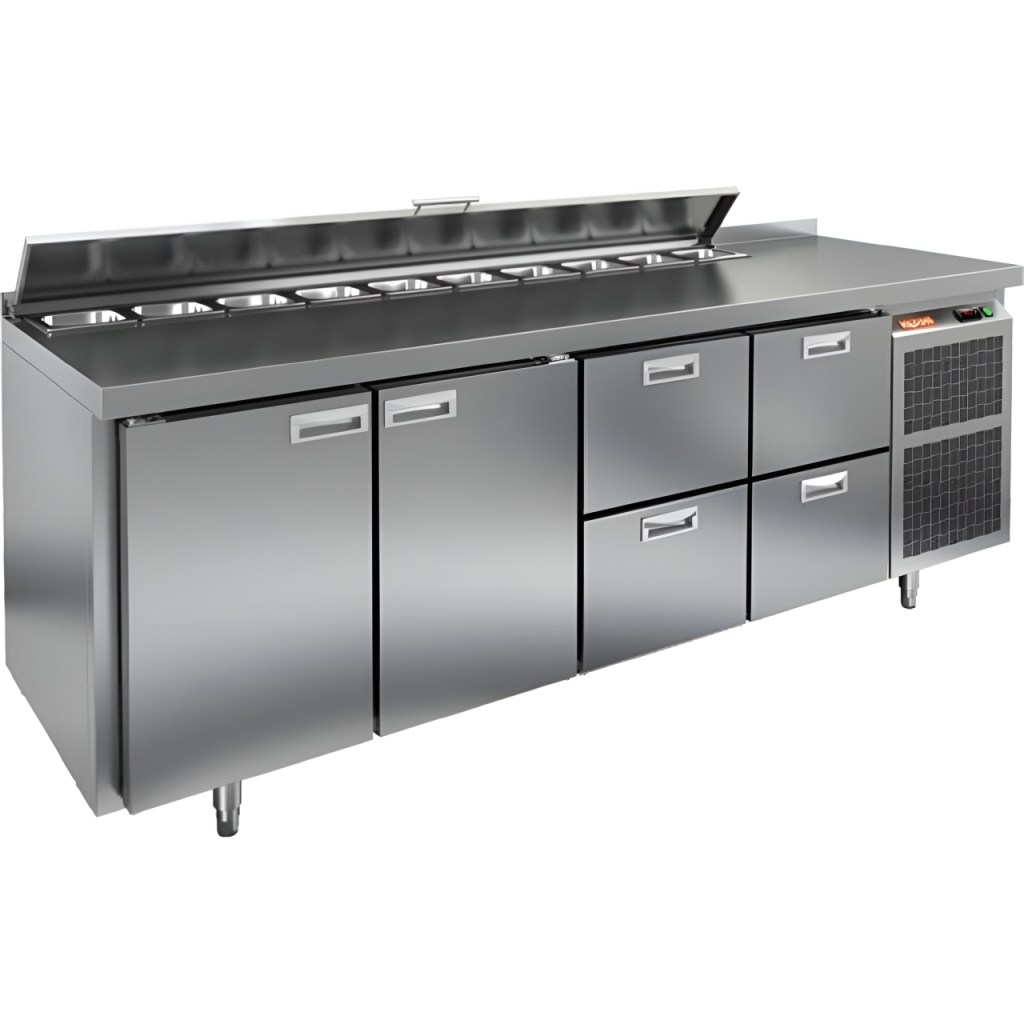 Каталог оборудования Холодильное оборудованиеСтолы охлаждаемыеСтолы холодильные для салатовСтол холодильный для салатов HiCold SL1-332GN (1/3) с крышкой Стол холодильный для салатов HiCold SL1-332GN (1/3) с крышкой Код товара: 064-851 Поделиться: WhatsAppTelegram СравнитьДобавить в КПВ избранное 0 290 692 ₽ В корзину 0 шт Под заказСамовывоз сегодня бесплатно Взять в кредит Купить в лизинг Получить консультацию в WhatsApp Описание Характеристики Отзывы 0 Инструкции 1 Стол холодильный для салатов HiCold SL1-332GN (1/3) предназначен для использования на предприятиях общественного питания и торговли. Он объединяет рабочую поверхность и охлаждаемый отсек, что делает его удобным решением для хранения, охлаждения и подготовки ингредиентов при приготовлении салатов, пиццы и других блюд. Такая конструкция позволяет повару работать быстрее и эффективнее, так как все необходимые продукты находятся под рукой. Корпус и столешница выполнены из прочной нержавеющей стали, устойчивой к коррозии и легко поддающейся санитарной обработке. Металлическая крышка защищает продукты от загрязнений и сохраняет их свежесть. Особенности модели: Электронная панель управления — точная настройка температурного режима. 8 выдвижных ящика — быстрое размещение и замена продуктов. Вместимость салат-бара — до 8 гастроемкостей глубиной до 100 мм. Автоматические доводчики — комфорт при загрузке/выгрузке. Легкозаменяемые магнитные уплотнители — надежная герметичность. Открытая агрегатная часть — быстрый доступ для обслуживания. Регулируемые по высоте ножки — устойчивость даже на неровном полу. Толщина столешницы, борта и теплоизоляции — 50 мм, что обеспечивает прочность и энергоэффективность конструкции. HiCold SL1-332GN (1/3) — практичное и удобное решение для профессиональной кухни, обеспечивающее удобную подготовку и хранение ингредиентов.Изображение товара, представленного на фото, может отличаться от его фактического вида. Показать все Габаритные размеры1835×700×850 ммДиапазон рабочей температурыот +2 до +10 °CРасположение агрегатаБоковое Материал столешницыНержавеющая Тип столаС дверьми и ящиками Тип двериГлухая Объём505 лКоличество дверей2 штТип гастроемкостейGN 1/3 Количество ящиков6 штРазмер полки530×325 ммНапряжение220 ВМощность0,46 кВтТип охлажденияДинамическое Тип оттайкиАвтоматическая СтолешницаС бортом Габариты в упаковке2000×850×1000 ммВес нетто120 кгВес брутто140 кгБрендHicold Оставить отзыв Еще никто не оставил отзыв на этот товар Декларация о соответствии.pdf Ранее просмотрено Под заказ 164 962 ₽ Стол холодильный для салатов HiCold SL2-11SN (1/6) М с крышкой Под заказ 13 529 ₽ Ванна моечная с бортом МХМ МБ-1-0,3-0,53/1,01 (AISI 430, t=0,6) Под заказ 140 481 ₽ Стол холодильный для салатов HiCold SL2-11GN (1/6) без крышки Под заказ 165 772 ₽ Стол холодильный для салатов HiCold SL2-11GN (1/6) М с крышкой Под заказ 204 922 ₽ Стол холодильный для салатов HiCold SL1-22GN (1/3) с крышкой Под заказ 123 741 ₽ Стол холодильный для салатов HiCold SLE1-11SN (1/3) О с крышкой Под заказ 172 162 ₽ Стол холодильный для салатов HiCold SLE1-11111GN (1/3) О с крышкой