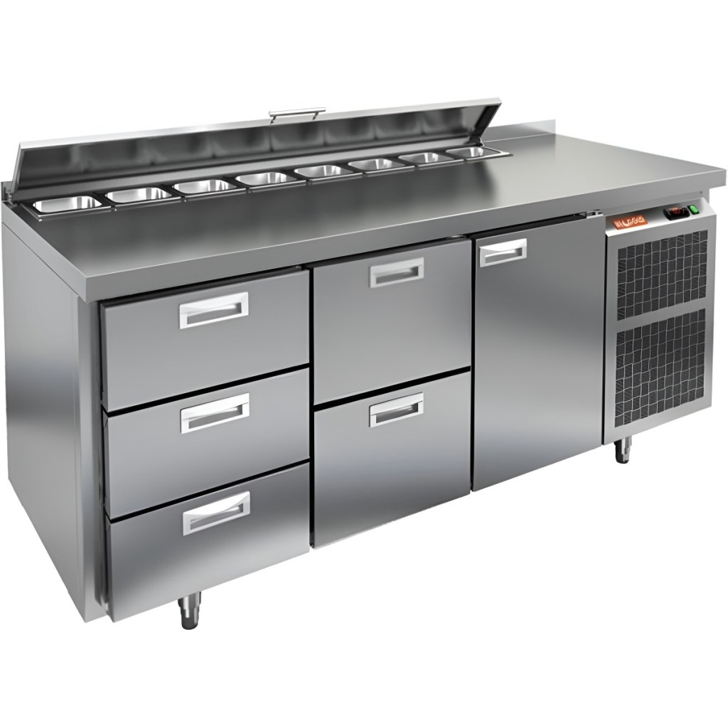 Модель совмещает охлаждаемый объем и рабочую поверхность, что значительно повышает удобство и скорость работы персонала. Корпус и столешница выполнены из прочной и гигиеничной нержавеющей стали, устойчивой к влаге, загрязнениям и механическим повреждениям. Металлическая крышка защищает продукты от загрязнений и сохраняет их свежесть.