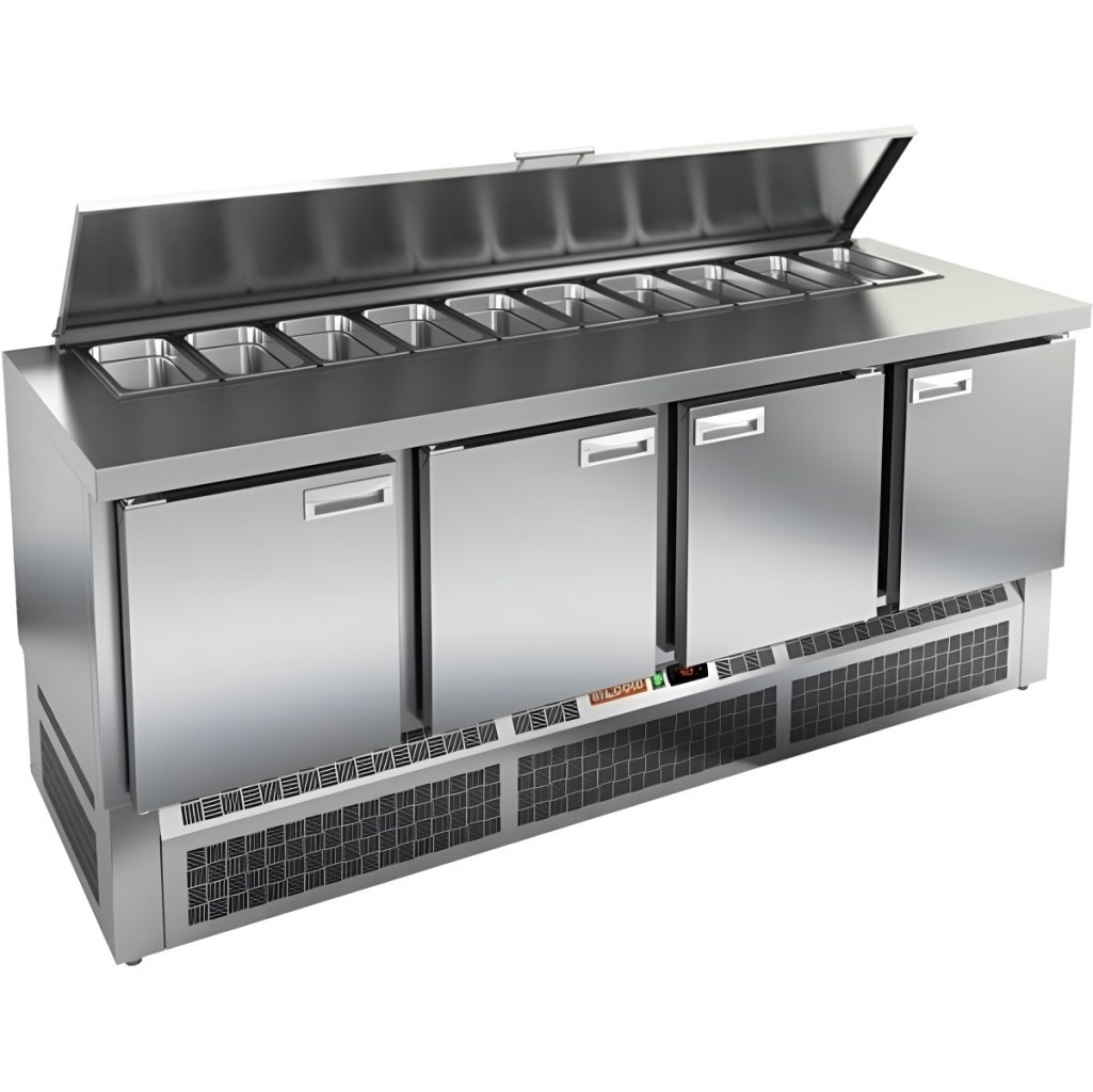 Каталог оборудования Холодильное оборудованиеСтолы охлаждаемыеСтолы холодильные для салатовСтол холодильный для салатов HiCold SLE1-11111GN (1/3) О с крышкой Стол холодильный для салатов HiCold SLE1-11111GN (1/3) О с крышкой Код товара: 064-545 Поделиться: WhatsAppTelegram СравнитьДобавить в КПВ избранное 0 172 162 ₽ В корзину 0 шт Под заказСамовывоз сегодня бесплатно Взять в кредит Купить в лизинг Получить консультацию в WhatsApp Описание Характеристики Отзывы 0 Инструкции 2 Стол холодильный для салатов HiCold SLE1-1111GN (1/3) О с крышкой предназначен для предприятий общественного питания и торговли. Он позволяет хранить и обрабатывать ингредиенты для пиццы, салатов и других блюд, а также охлаждать и кратковременно хранить скоропортящиеся продукты и напитки. Модель совмещает рабочую поверхность и охлаждаемый объем, что обеспечивает удобство работы повара: все необходимые компоненты всегда под рукой. Корпус и столешница выполнены из нержавеющей стали, что гарантирует долговечность и простоту ухода. Особенности: Динамическая система охлаждения — равномерное распределение температуры по всему объему. Автоматическая оттайка — упрощает уход за оборудованием. Электронная панель управления — удобная настройка температуры и режимов работы. 4 вместительные внутренние полки формата GN 1/1 — оптимальное хранение ингредиентов. Автоматические доводчики дверей с фиксатором открытого положения — комфорт и безопасность работы. Легкозаменяемые магнитные уплотнители — простота обслуживания. Открытая агрегатная часть — облегчает доступ для обслуживания. Регулируемые по высоте ножки — адаптация к рабочей поверхности. Размер полки: 530×325 мм (GN 1/1) Максимальная глубина гастроемкостей: 100 мм Столешница без борта и с крышкой: толщина столешницы и теплоизоляции — 50 мм, высота борта — 50 мм HiCold SLE1-1111GN (1/3) О с крышкой — надежный и удобный стол для профессиональной кухни. Он обеспечивает эффективное охлаждение и хранение ингредиентов, а комбинированная рабочая поверхность с холодильным объемом упрощает работу повара, делая процесс приготовления быстрее и удобнее.Изображение товара, представленного на фото, может отличаться от его фактического вида. Показать все Габаритные размеры1970×700×800 ммДиапазон рабочей температурыот +2 до +10 °CРасположение агрегатаНижнее Материал столешницыНержавеющая Тип столаС дверьми Тип двериГлухая Объём505 лКоличество дверей4 штТип гастроемкостейGN 1/3 Размер полки530×325 ммНапряжение220 ВМощность0,46 кВтТип охлажденияДинамический Тип оттайкиАвтоматическая СтолешницаС бортом Вес нетто135 кгВес брутто195 кгБрендHicold Оставить отзыв Еще никто не оставил отзыв на этот товар Паспорт на HICOLD SLE1-1111GN (1/3) О.pdfДекларация о соответствии.pdf Ранее просмотрено Под заказ 229 492 ₽ Стол холодильный для салатов HiCold SL1-113GN (1/3) с крышкой Под заказ 258 922 ₽ Стол холодильный для салатов HiCold SL2-2211GN (1/6) с крышкой