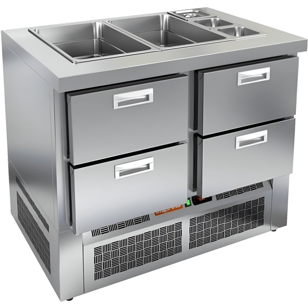 Модель обеспечивает удобный доступ к продуктам и позволяет повару работать максимально эффективно. Корпус и столешница изготовлены из нержавеющей стали, что гарантирует долговечность конструкции, устойчивость к коррозии и соответствие санитарным нормам.