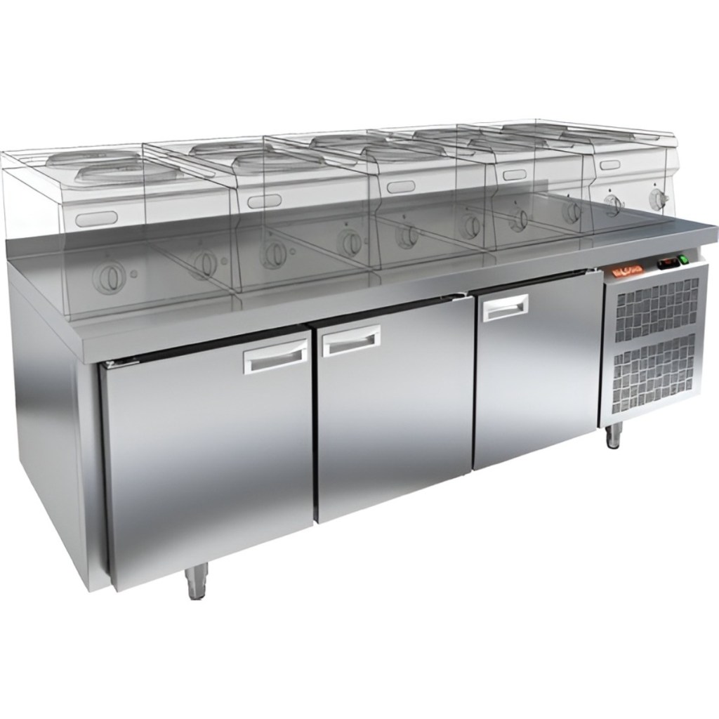 Каталог оборудования Холодильное оборудованиеСтолы охлаждаемыеСтолы холодильные под тепловое оборудованиеСтол морозильный HiCold SN 111/BT LT под тепловое оборудование Стол морозильный HiCold SN 111/BT LT под тепловое оборудование Код товара: 065-159 Поделиться: WhatsAppTelegram СравнитьДобавить в КПВ избранное 0 168 561 ₽ В корзину 0 шт Под заказСамовывоз сегодня бесплатно Взять в кредит Купить в лизинг Получить консультацию в Max Описание Характеристики Отзывы 0 Инструкции 2 Стол морозильный HiCold SN 111/BT LT под тепловое оборудование — это профессиональное оборудование, разработанное для предприятий общественного питания и торговли. Он сочетает в себе функцию заморозки и хранения продуктов, полуфабрикатов и мороженого, а также возможность установки теплового оборудования прямо на рабочую поверхность. Под столешницей расположен ДСП-лист, который придаёт дополнительную жёсткость конструкции и предотвращает проникновение тепла в морозильную камеру. Такое решение позволяет эффективно использовать рабочее пространство и повышает производительность труда на кухне. Особенности: Цельнозаливной корпус из нержавеющей стали с теплоизоляцией 50 мм — прочность, герметичность и высокая энергоэффективность. Электронный блок управления с несколькими режимами оттаивания — точность и надёжность в эксплуатации. Экономичный компрессор нового поколения — снижение энергопотребления. Вентилятор увеличенной мощности и система принудительной вентиляции — равномерное охлаждение по всему объему. Интеллектуальная система размораживания и термическое выпаривание конденсата — минимизация обслуживания. Петли-доводчики и контурный электронагреватель (ПЭН) — плотное закрывание дверей и защита от примерзания. Регулируемые ножки по высоте — устойчивая установка на любой поверхности. Удобный доступ к агрегату — простота сервисного обслуживания. Допустимая нагрузка на полку — до 50 кг. Высота борта столешницы — 50 мм. Уверенная работа при температуре окружающей среды от +12 до +32 °C. HiCold SN 111/BT LT под тепловое оборудование — это универсальное и надёжное решение для профессиональной кухни. Он не только обеспечивает длительное хранение продуктов в стабильном температурном режиме, но и позволяет разместить на рабочей поверхности тепловое оборудование, делая процесс приготовления более удобным и эффективным.Изображение товара, представленного на фото, может отличаться от его фактического вида. Показать все Габаритные размеры1835×600×675 ммДиапазон рабочей температурыот -18 до -10 °CМатериал столешницыНержавеющая Расположение агрегатаБоковое Объём320 лТип столаС дверьми Тип двериГлухая Количество дверей3 штРазмер полки430×325 ммНапряжение220 ВМощность0,61 кВтТип охлажденияДинамический Тип оттайкиАвтоматическая Габариты в упаковке1935×700×775 ммВес нетто109 кгВес брутто159 кгБрендHicold Оставить отзыв Еще никто не оставил отзыв на этот товар Паспорт на HICOLD SN 111BT LT.pdfДекларация о соответствии.pdf Похожие товары Перейти в каталог В наличии 128 777 ₽ Стол морозильный Cooleq GN3200BT с бортом Под заказ 169 732 ₽ Стол морозильный Abat СХН-70-02 без борта (дверь, дверь, дверь) С этим товаром покупают В наличии 143 021 ₽ Шкаф холодильный универсальный Polair CV 110-S Под заказ 77 531 ₽ Газовый лавовый гриль Abat ГЛК-40Н Ранее просмотрено Под заказ 336 987 ₽ Компрессорно-конденсаторный блок Север BGSF 435 S Под заказ 229 184 ₽ Компрес