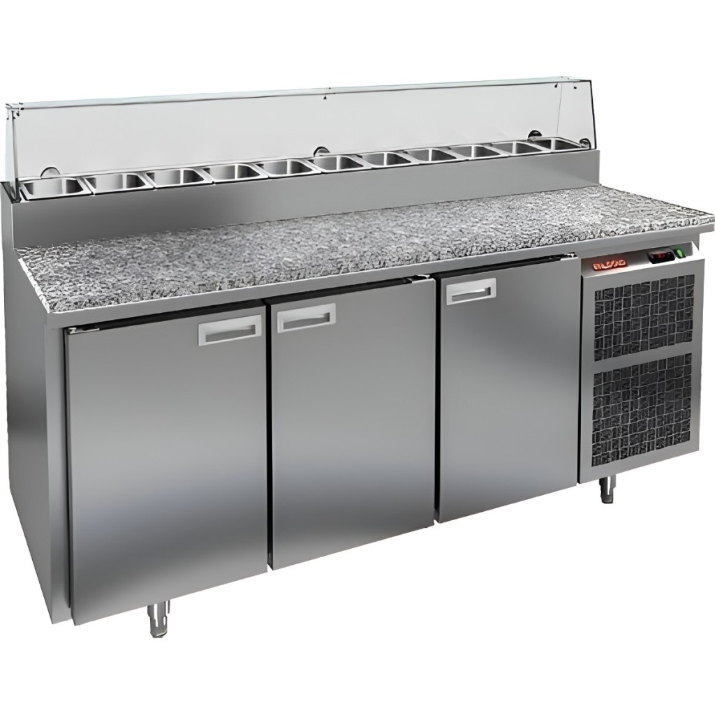 Каталог оборудования Холодильное оборудованиеСтолы охлаждаемыеСтолы холодильные для пиццыСтол холодильный для пиццы HiCold PZ2-111GN (1/6) камень со стеклом Стол холодильный для пиццы HiCold PZ2-111GN (1/6) камень со стеклом Код товара: 064-742 Поделиться: WhatsAppTelegram СравнитьДобавить в КПВ избранное 0 256 672 ₽ В корзину 0 шт Под заказСамовывоз сегодня бесплатно Взять в кредит Купить в лизинг Получить консультацию в WhatsApp Описание Характеристики Отзывы 0 Инструкции 2 Стол холодильный для пиццы HiCold PZ2-111GN (1/6) камень со стеклом предназначен для предприятий общественного питания и торговли. Он совмещает рабочую поверхность для раскатки теста и подготовки ингредиентов с охлаждаемым блоком для кратковременного хранения скоропортящихся продуктов и напитков. Стеклянный купол защищает ингредиенты от внешних воздействий и обеспечивает их наглядную демонстрацию, что особенно удобно при использовании в салат-барах. Корпус выполнен из нержавеющей стали, а рабочая столешница — из гранита, что обеспечивает долговечность, прочность и удобство работы с продуктами. Основные особенности: Гранитная столешница и корпус из нержавеющей стали — прочность, долговечность и лёгкость ухода Стеклянный купол — защита ингредиентов и визуальная демонстрация продуктов Динамическая система охлаждения — равномерное распределение холода по всему объёму Автоматическая оттайка — стабильная работа без наледи Электронная панель управления — точная настройка температуры 3 вместительные внутренние полки формата GN 1/1 (размер 530×325 мм) — удобное хранение ингредиентов Автоматические доводчики дверей с фиксатором открытого положения — комфортная эксплуатация Легкозаменяемые магнитные уплотнители — поддержание герметичности Открытая агрегатная часть — лёгкий доступ к техническим элементам Регулируемые по высоте ножки — установка на неровных поверхностях Максимальная глубина гастроёмкостей: 100 мм Глубина рабочей поверхности: 486 мм Толщина столешницы: 50 мм Толщина теплоизоляции: 50 мм Вместимость салат-бара: до 11 гастроёмкостей Стол холодильный HiCold PZ2-111GN (1/6) камень со стеклом— надёжный и функциональный стол для пиццы и салатов. Гранитная рабочая поверхность повышает прочность и долговечность оборудования, а стеклянный купол обеспечивает защиту и наглядное представление ингредиентов. Стол обеспечивает удобство работы и быстрый доступ к продуктам, делая его оптимальным решением для профессиональных кухонь и предприятий общественного питания. Изображение товара, представленного на фото, может отличаться от его фактического вида. Показать все Габаритные размеры1835×700×1000 ммДиапазон рабочей температурыот +2 до +10 °CРасположение агрегатаБоковое Материал столешницыГранитная Тип столаС дверьми Тип двериГлухая Объём505 лТип гастроемкостейGN 1/6 Количество дверей3 штРазмер полки530×325 ммНапряжение220 ВМощность0,46 кВтТип охлажденияДинамическое Тип оттайкиАвтоматическая Габариты в упаковке2000×850×1080 ммВес нетто172 кгВес брутто248 кгБрендHicoldВсе холодильные столы для пиццы Hicold Оставить отзыв Еще никто не оставил отзыв на этот товар Паспорт на HICOLD PZ2-111GN.pdfДекларация о соответствии.pdf Ранее просмотрено Под заказ 302 571 ₽ Стол холодильный для пиццы HiCold PZE2-222/GN (1/6H) камень