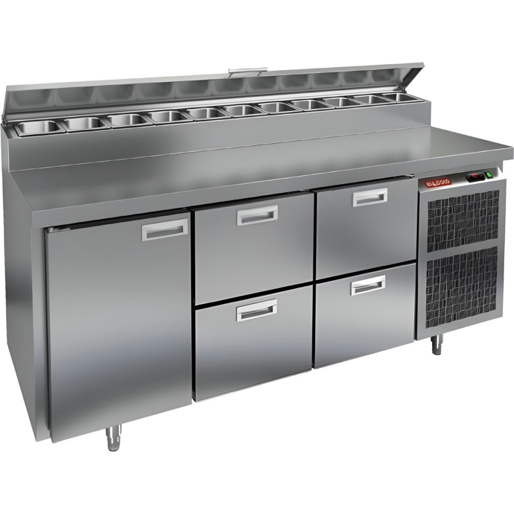 Каталог оборудования Холодильное оборудованиеСтолы охлаждаемыеСтолы холодильные для пиццыСтол холодильный для пиццы HiCold PZ2-122GN (1/6) Стол холодильный для пиццы HiCold PZ2-122GN (1/6) Код товара: 064-756 Поделиться: WhatsAppTelegram СравнитьДобавить в КПВ избранное 0 275 572 ₽ В корзину 0 шт Под заказСамовывоз сегодня бесплатно Взять в кредит Купить в лизинг Получить консультацию в WhatsApp Описание Характеристики Отзывы 0 Стол холодильный для пиццы HiCold PZ2-122GN (1/6) предназначен для кухонь и предприятий общественного питания. Он используется для раскатки теста, подготовки ингредиентов для пиццы, салатов и других блюд, а также для охлаждения и кратковременного хранения скоропортящихся продуктов. Модель совмещает нержавеющую рабочую поверхность и охлаждаемый отсек с 1 дверью и 4 ящиками, обеспечивая удобный доступ к ингредиентам и эффективное хранение. Особенности: Динамическая система охлаждения для равномерного поддержания температуры Автоматическая оттайка для удобного обслуживания Электронная панель управления для точной настройки параметров Вместительная внутренняя полка формата GN 1/1 (размер 530×325 мм) 1 дверь и 4 вместительных ящика для хранения ингредиентов Автоматические доводчики дверей с фиксатором открытого положения Легкозаменяемые магнитные уплотнители для герметичности Открытая агрегатная часть для легкого доступа к компонентам Регулируемые по высоте ножки для устойчивости Нержавеющая столешница глубиной 486 мм и толщиной 50 мм — устойчива к коррозии, легко моется и гигиенична Толщина теплоизоляции: 50 мм Максимальная глубина гастроемкостей: 100 мм Вместимость салат-бара: 11 гастроемкости Стол холодильный HiCold PZ2-122GN (1/6) — это надежный и функциональный стол для пиццы. Он объединяет рабочую поверхность и охлаждаемый отсек, упрощает хранение и подготовку ингредиентов, обеспечивает удобство работы повара и соответствует стандартам профессиональной кухни. Изображение товара, представленного на фото, может отличаться от его фактического вида. Показать все Габаритные размеры1835×700×1000 ммДиапазон рабочей температурыот +2 до +10 °CРасположение агрегатаБоковое Материал столешницыНержавеющая Тип столаС дверьми и ящиками Тип двериГлухая Объём350 лТип гастроемкостейGN 1/6 Количество дверей1 штКоличество ящиков4 штРазмер полки530×325 ммНапряжение220 ВМощность0,5 кВтТип охлажденияДинамическое Тип оттайкиАвтоматическая Габариты в упаковке2000×850×1140 ммВес нетто172 кгВес брутто210 кгБрендHicoldВсе холодильные столы для пиццы HicoldВсе нержавеющие холодильные столы для пиццы Оставить отзыв Еще никто не оставил отзыв на этот товар Ранее просмотрено Под заказ 214 642 ₽ Стол холодильный для пиццы HiCold PZ1-12GN (1/3)