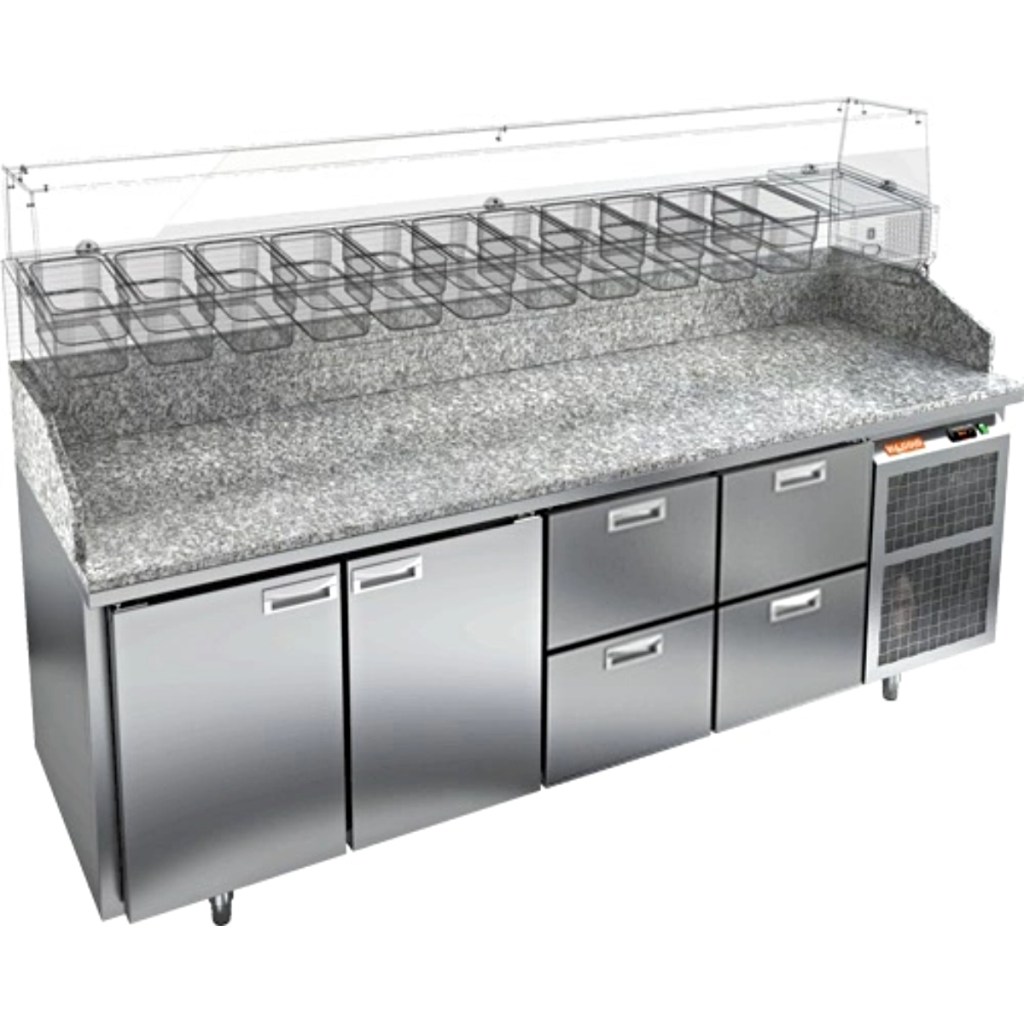 Каталог оборудования Холодильное оборудованиеСтолы охлаждаемыеСтолы холодильные для пиццыСтол холодильный для пиццы HiCold PZ3-1122/GN камень Стол холодильный для пиццы HiCold PZ3-1122/GN камень Код товара: 065-014 Поделиться: WhatsAppTelegram СравнитьДобавить в КПВ избранное 0 345 321 ₽ В корзину 0 шт Под заказСамовывоз сегодня бесплатно Взять в кредит Купить в лизинг Получить консультацию в WhatsApp Описание Характеристики Отзывы 0 Стол холодильный для пиццы HiCold PZE3-221/GN камень предназначен для использования в пиццериях, кафе, магазинах и ресторанах. Он идеально подходит для раскатки теста, подготовки ингредиентов и кратковременного хранения скоропортящихся продуктов. Витрина приобретается отдельно. Стол сочетает корпус из нержавеющей стали и гранитную столешницу, которая устойчива к механическим и температурным нагрузкам и удобна в работе с тестом. Такая конструкция обеспечивает долговечность, гигиеничность и простоту ухода. Особенности модели: Охлаждение: динамическое — равномерное поддержание температуры Оттайка: автоматическая — удобство и экономия времени Панель управления: электронная — точная настройка температуры Ножки: регулируемые по высоте — устойчивость на неровной поверхности Двери: 1 глухая дверца с автоматическими доводчиками и фиксатором открытого положения Ящики: 4 выдвижных ящика — удобное хранение ингредиентов Уплотнители: легкозаменяемые магнитные — герметичность и простота обслуживания Толщина теплоизоляции: 50 мм — сохранение холода и энергоэффективность Рабочая поверхность: глубина 680 мм — удобство работы HiCold PZE3-221/GN камень— это надёжный и функциональный холодильный стол для пиццы, который сочетает прочность, эргономику и эффективное охлаждение. Благодаря гранитной столешнице, корпусу из нержавеющей стали, двум глухим дверям и двум выдвижным ящикам он станет универсальным решением для профессиональной кухни. Изображение товара, представленного на фото, может отличаться от его фактического вида. Показать все Габаритные размеры2280×700×1050 ммДиапазон рабочей температурыот +2 до +10 °CРасположение агрегатаБоковое Материал столешницыГранитная Тип столаС дверьми и ящиками Тип двериГлухая Объём660 лКоличество дверей2 штКоличество ящиков4 штРазмер полки530×325 ммНапряжение220 ВМощность0,5 кВтТип охлажденияДинамическое Тип оттайкиАвтоматическая Габариты в упаковке2430×850×1140 ммВес нетто270 кгВес брутто320 кгБрендHicoldВсе холодильные столы для пиццы HicoldВсе нержавеющие холодильные столы для пиццы Оставить отзыв Еще никто не оставил отзыв на этот товар Ранее просмотрено Под заказ 166 581 ₽ Стол холодильный для салатов HiCold SL2-111SN (1/6)
