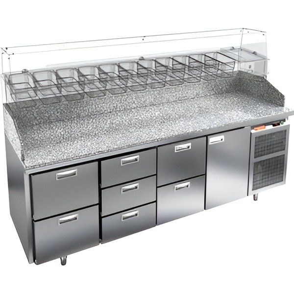 Каталог оборудования Холодильное оборудованиеСтолы охлаждаемыеСтолы холодильные для пиццыСтол холодильный для пиццы HiCold PZ3-2321/GN камень Стол холодильный для пиццы HiCold PZ3-2321/GN камень Код товара: 065-015 Поделиться: WhatsAppTelegram СравнитьДобавить в КПВ избранное 0 391 222 ₽ В корзину 0 шт Под заказСамовывоз сегодня бесплатно Взять в кредит Купить в лизинг Получить консультацию в WhatsApp Описание Характеристики Отзывы 0 Стол холодильный для пиццы HiCold PZ3-2321/GN камень предназначен для использования в пиццериях, кафе, магазинах и ресторанах. Он идеально подходит для раскатки теста, подготовки ингредиентов и кратковременного хранения скоропортящихся продуктов. Витрина приобретается отдельно. Стол сочетает корпус из нержавеющей стали и гранитную столешницу, которая устойчива к механическим и температурным нагрузкам и удобна в работе с тестом. Такая конструкция обеспечивает долговечность, гигиеничность и простоту ухода. Особенности модели: Охлаждение: динамическое — равномерное поддержание температуры Оттайка: автоматическая — удобство и экономия времени Панель управления: электронная — точная настройка температуры Ножки: регулируемые по высоте — устойчивость на неровной поверхности Двери: 1 глухая дверца с автоматическими доводчиками и фиксатором открытого положения Ящики: 7 выдвижных ящика — удобное хранение ингредиентов Уплотнители: легкозаменяемые магнитные — герметичность и простота обслуживания Толщина теплоизоляции: 50 мм — сохранение холода и энергоэффективность Рабочая поверхность: глубина 680 мм — удобство работы HiCold PZ3-2321/GN камень — это надёжный и функциональный холодильный стол для пиццы, который сочетает прочность, эргономику и эффективное охлаждение. Благодаря гранитной столешнице, корпусу из нержавеющей стали, двум глухим дверям и двум выдвижным ящикам он станет универсальным решением для профессиональной кухни. Изображение товара, представленного на фото, может отличаться от его фактического вида. Показать все Габаритные размеры2280×700×1050 ммДиапазон рабочей температурыот +2 до +10 °CРасположение агрегатаБоковое Материал столешницыГранитная Тип столаС дверьми и ящиками Тип двериГлухая Объём660 лКоличество дверей1 штКоличество ящиков7 штРазмер полки530×325 ммНапряжение220 ВМощность0,5 кВтТип охлажденияДинамическое Тип оттайкиАвтоматическая Габариты в упаковке2430×850×1140 ммВес нетто270 кгВес брутто320 кгБрендHicoldВсе холодильные столы для пиццы HicoldВсе нержавеющие холодильные столы для пиццы Оставить отзыв Еще никто не оставил отзыв на этот товар Ранее просмотрено Под заказ 269 092 ₽ Стол холодильный для пиццы HiCold PZ2-22GN (1/6) камень