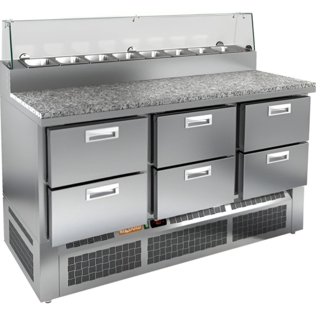 Каталог оборудования Холодильное оборудованиеСтолы охлаждаемыеСтолы холодильные для пиццыСтол холодильный для пиццы HiCold PZE2-222/GN (1/6H) камень Стол холодильный для пиццы HiCold PZE2-222/GN (1/6H) камень Код товара: 064-967 Поделиться: WhatsAppTelegram СравнитьДобавить в КПВ избранное 0 302 572 ₽ В корзину 0 шт Под заказСамовывоз сегодня бесплатно Взять в кредит Купить в лизинг Получить консультацию в WhatsApp Описание Характеристики Отзывы 0 Стол холодильный для пиццы HiCold PZE2-222/GN (1/6H) камень предназначен для использования на предприятиях общественного питания и торговли. Он совмещает охлаждаемый объём и удобную рабочую поверхность, обеспечивая повару быстрый доступ к ингредиентам и комфорт при подготовке блюд — от пиццы и салатов до закусок и десертов. Модель отличается прочной и гигиеничной конструкцией: корпус выполнен из нержавеющей стали, устойчивой к износу и простой в уходе. Столешница из гранита долговечна, устойчива к влаге и высоким температурам, что делает её удобной для интенсивной эксплуатации. Ключевые особенности: Электронная панель управления – точная регулировка температурного режима 6 выдвижных ящиков — позволяют удобно распределить ингредиенты и оптимально организовать пространство для хранения продуктов Салат-бар на 8 гастроемкостей – удобное размещение и быстрый доступ к ингредиентам Автоматические доводчики дверей с фиксатором открытого положения – комфорт при работе Легкозаменяемые магнитные уплотнители – надёжная герметизация и простота обслуживания Открытая агрегатная часть – лёгкий доступ для технического обслуживания Регулируемые по высоте ножки – устойчивость на разных типах покрытия Максимальная глубина гастроемкостей: 100 мм Глубина рабочей поверхности: 486 мм Толщина столешницы: 50 мм HiCold PZE2-222/GN (1/6H) камень — универсальный стол для пиццы, сочетающий вместительное охлаждение и рабочую поверхность из нержавеющей стали. Подходит для ресторанов, кафе и пиццерий, где важно удобство, гигиена и надёжность оборудования.Изображение товара, представленного на фото, может отличаться от его фактического вида. Показать все Габаритные размеры1485×700×990 ммДиапазон рабочей температурыот +2 до +10 °CРасположение агрегатаНижнее Материал столешницыНержавеющая Тип столаС ящиками Объём375 лТип гастроемкостейGN 1/6 Количество ящиков6 штРазмер полки530×325 ммНапряжение220 ВМощность0,2 кВтТип охлажденияДинамическое Тип оттайкиАвтоматическая СтолешницаС бортом Габариты в упаковке1700×850×1180 ммВес нетто123 кгВес брутто175 кгБрендHicold Оставить отзыв Еще никто не оставил отзыв на этот товар Ранее просмотрено Под заказ 301 736 ₽ Камера холодильная Polair КХН-12,42 (1400×4700×2500) 100 мм Под заказ 358 538 ₽ Камера холодильная Polair КХН-19,87 (2600×3800×2500) 100 мм Пульт в комплектеПод заказ 114 665 ₽ Сплит-система холодильная низкотемпературная Арктика СМH 215 (с зимним комплектом)