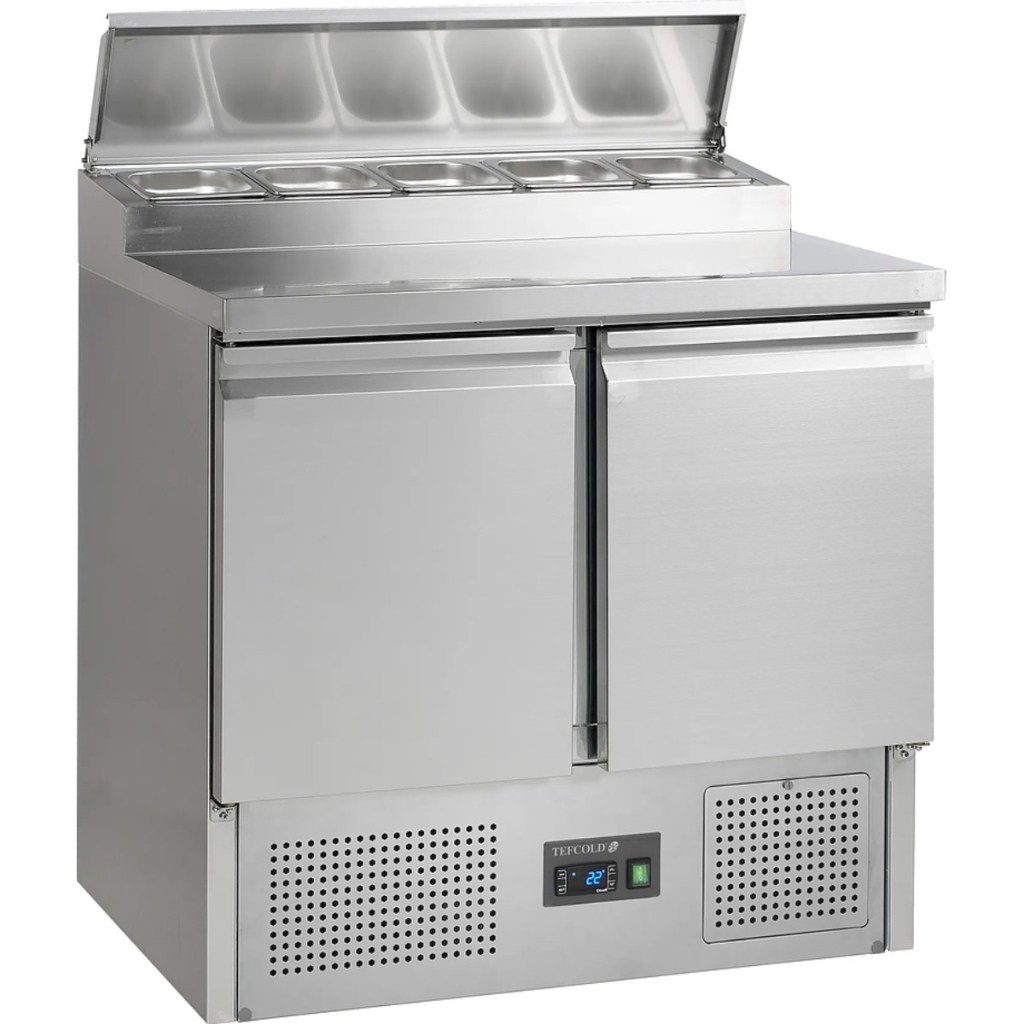 Каталог оборудования Холодильное оборудованиеСтолы охлаждаемыеСтолы холодильные для пиццыСтол холодильный для сэндвичей TEFCOLD SS920 Стол холодильный для сэндвичей TEFCOLD SS920 Код товара: 009-832 Поделиться: WhatsAppTelegram СравнитьДобавить в КПВ избранное 0 111 596 ₽ В корзину 0 шт В наличииСамовывоз сегодня бесплатно Взять в кредит Купить в лизинг Получить консультацию в WhatsApp Описание Характеристики Отзывы 0 Стол холодильный для сэндвичей TEFCOLD SS920 — профессиональное оборудование для обработки ингредиентов, используемых для приготовления сэндвичей, охлаждения и кратковременного хранения продуктов на предприятиях общественного питания и торговли. Корпус и внутренняя отделка выполнены из нержавеющей стали AISI 304, обеспечивая долговечность и лёгкость ухода. Особенности модели: Статическое охлаждение с вентилятором — равномерное распределение холода Автоматическое размораживание — поддержание стабильной работы без наледи Электронный термостат — точное управление температурой Хладагент R600a, подзарядка — 0,068 кг Самозакрывающиеся двери 2 полки (размер 530 × 325 мм) Регулируемые по высоте ножки — устойчивость на неровной поверхности Климатический класс 4 — работа при температуре до +30 °C Полезный объём: 201 л Внутренние размеры камеры: 830×515×500 мм Энергопотребление: 2 кВт/сутки Уровень шума: 42 дБ TEFCOLD SS920 — надёжный холодильный стол для профессиональных кухонь и точек общественного питания. Модель сочетает компактное охлаждаемое пространство, удобные полки и эффективное управление температурой, обеспечивая сохранность ингредиентов и комфорт в работе. Изображение товара, представленного на фото, может отличаться от его фактического вида. Показать все Габаритные размеры900×700×950 ммДиапазон рабочей температурыот +2 до +10 °CРасположение агрегатаНижнее Материал столешницыНержавеющая Тип столаС дверьми Тип двериГлухая Общий объем228 лПолезный объем201 лКоличество дверей2 штКлиматический класс4 Размер полкиGN1/1 ммНапряжение230 ВРасход электроэнергии в сутки2 кВт/сутТип охлажденияДинамический Тип оттайкиАвтоматическая ХладагентR600a Уровень шума42 дБГабариты в упаковке980×770×1170 ммВес нетто80 кгВес брутто90 кгБрендTefcold Оставить отзыв Еще никто не оставил отзыв на этот товар Похожие товары Перейти в каталог В наличии 87 968 ₽ Стол холодильный среднетемпературный Polair ТМ2-G Под заказ 79 911 ₽ Стол холодильный среднетемпературный HiCold GN 1/TN W В наличии 64 485 ₽ Стол холодильный среднетемпературный Cooleq S901 В наличии 65 229 ₽ Стол холодильный среднетемпературный HURAKAN HKN-GNL2TN С этим товаром покупают В наличии 104 580 ₽ Шкаф холодильный Полюс Carboma R700 Под заказ 76 010 ₽ Газовый лавовый гриль Abat ГЛК-40Н Ранее просмотрено Под заказ 114 756 ₽ Сплит-система холодильная низкотемпературная Север BGS 117 S Под заказ 127 554 ₽ Сплит-система холодильная среднетемпературная Intercold MCM 115 FT Под заказ 373 608 ₽ Льдогенератор Brema TB 1405A HC (колотый) Под заказ 202 156 ₽ Сплит-система холодильная среднетемпературная Север MGSF 315 S Под заказ 196 033 ₽ Моноблок холодильный низкотемпературный Север BSB 220 S Под заказ 198 171 ₽ Моноблок холодильный среднетемпературный Intercold MMCM-331 FT В наличии 260 145 ₽ Моноблок холодильный низкотемпературный Север BGM 340 S