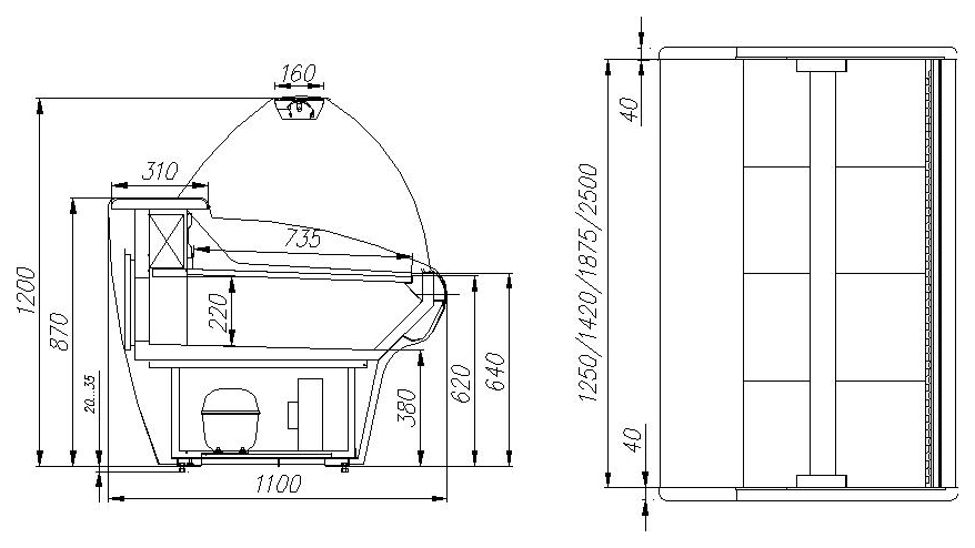 • Глубина выкладки 735 мм — вместительная зона для демонстрации товаров.