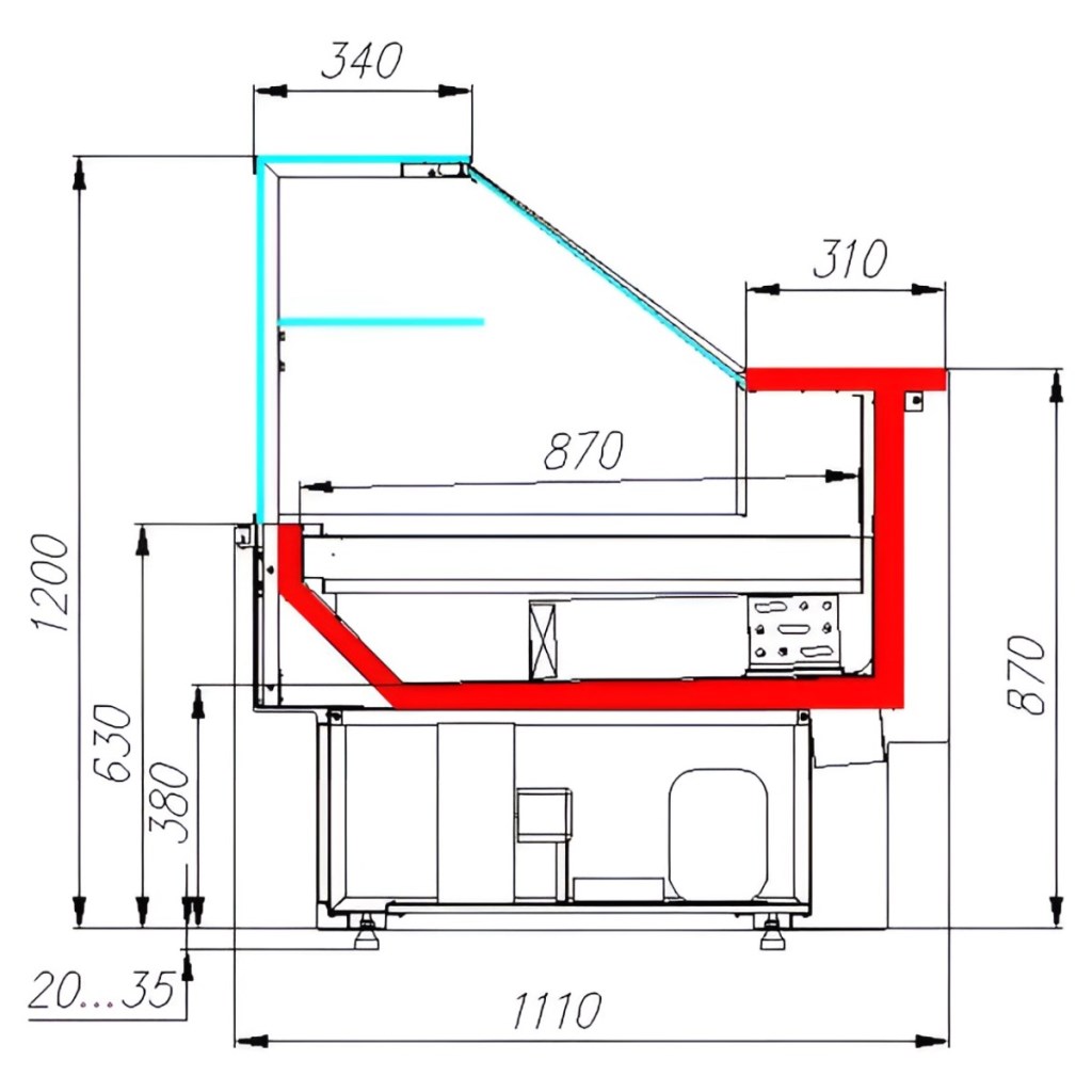 Витрина оснащена динамической системой охлаждения, обеспечивающей равномерное распределение холодного воздуха по всей зоне выкладки, а также регулируемыми по высоте ножками (20–35 мм) для удобства установки. Рабочая поверхность и столешница выполнены из шлифованной нержавеющей стали, что гарантирует долговечность и гигиеничность.