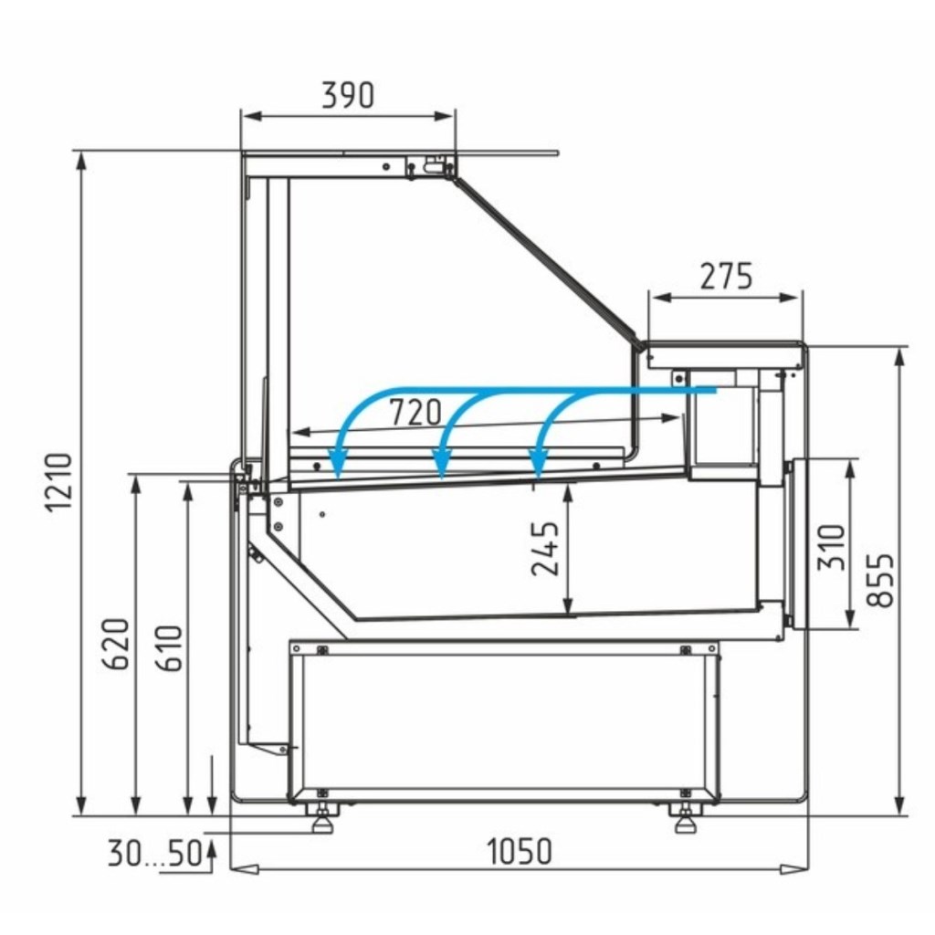 • Подъёмное фронтальное стекло с газлифтом — удобный доступ к продуктам и лёгкое обслуживание.