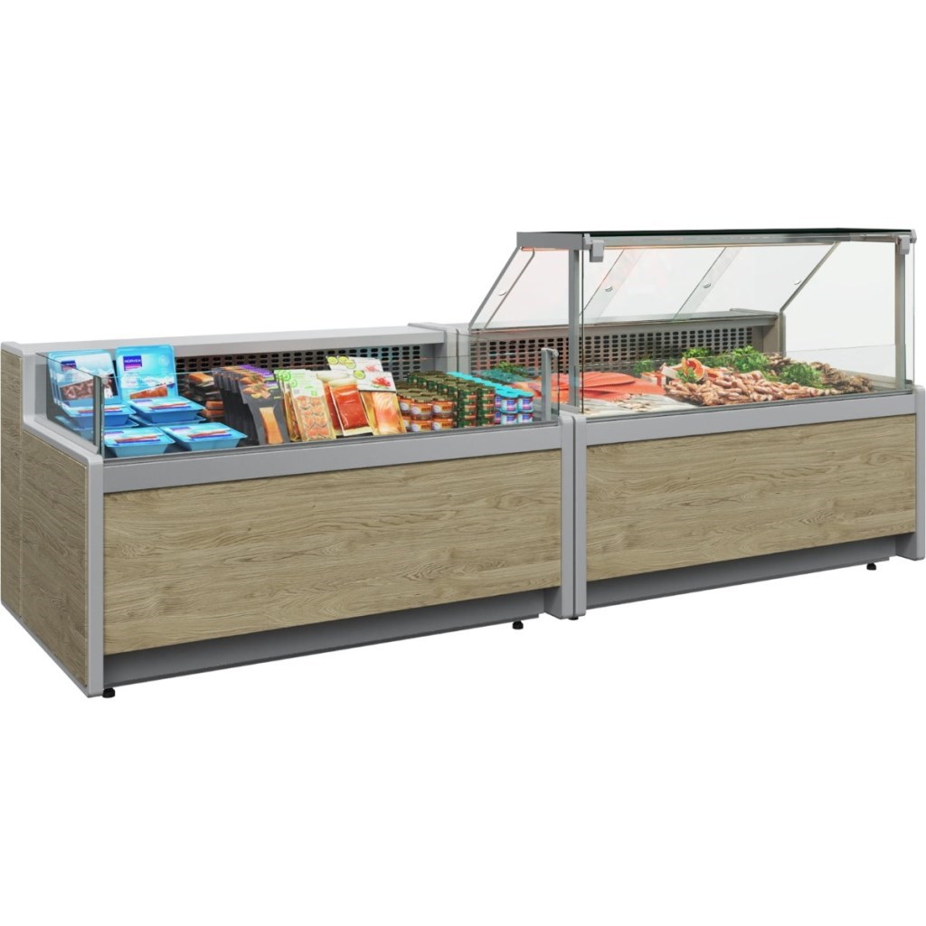 Боковые панели со стеклопакетом в комплект не входят и приобретаются отдельно. Для установки витрины как отдельностоящего оборудования необходимо докупить боковины. При формировании линейной компоновки нескольких витрин с одинаковым температурным режимом требуется всего две боковины на всю линию.