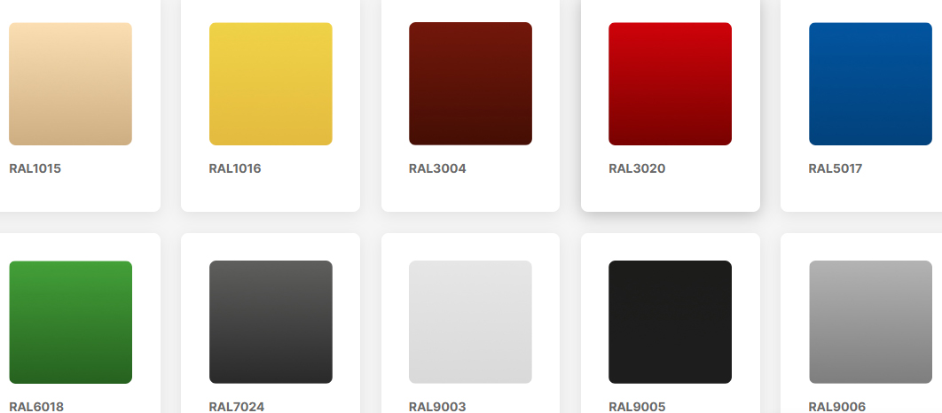9003, 9005, 9006, 1015, 1016, 3004, 3020, 5017, 6018 и 7024.